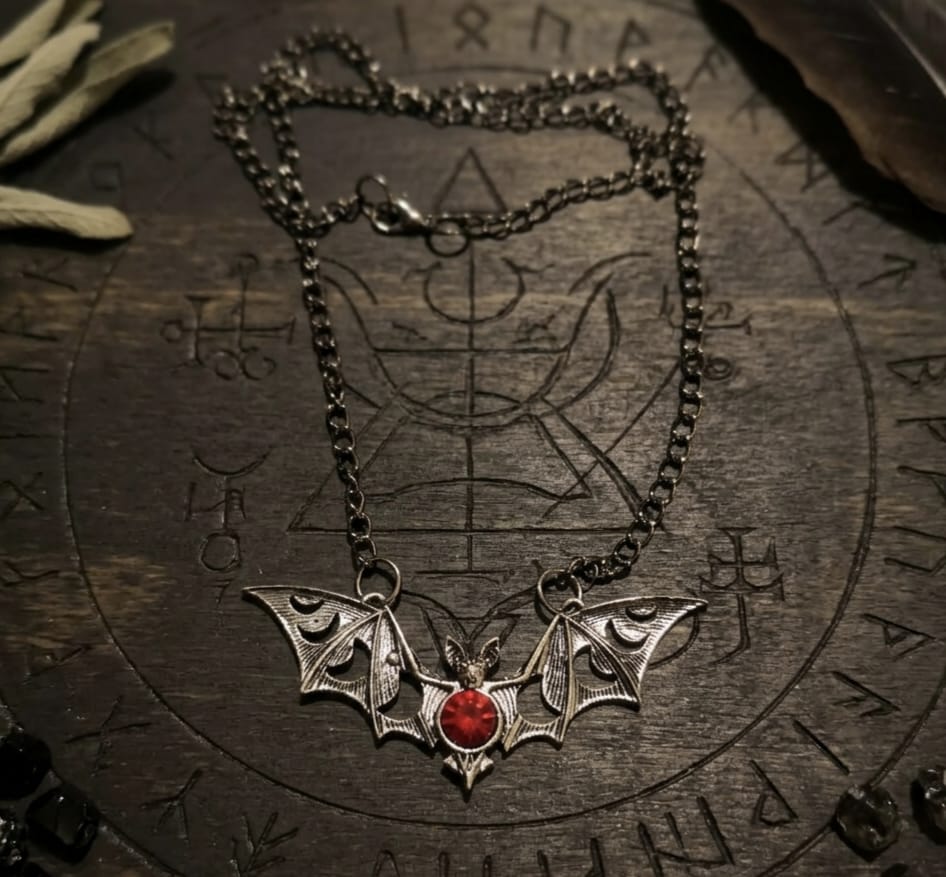 Uma peça que carrega a energia do oculto e do feminino lunar, ideal para quem se conecta com a noite, com os mistérios e com os processos de renascimento interior. O morcego, criatura que transita entre mundos, aliado às fases lunares, reforça o poder de enxergar além do visível e abraçar as mudanças com consciência.