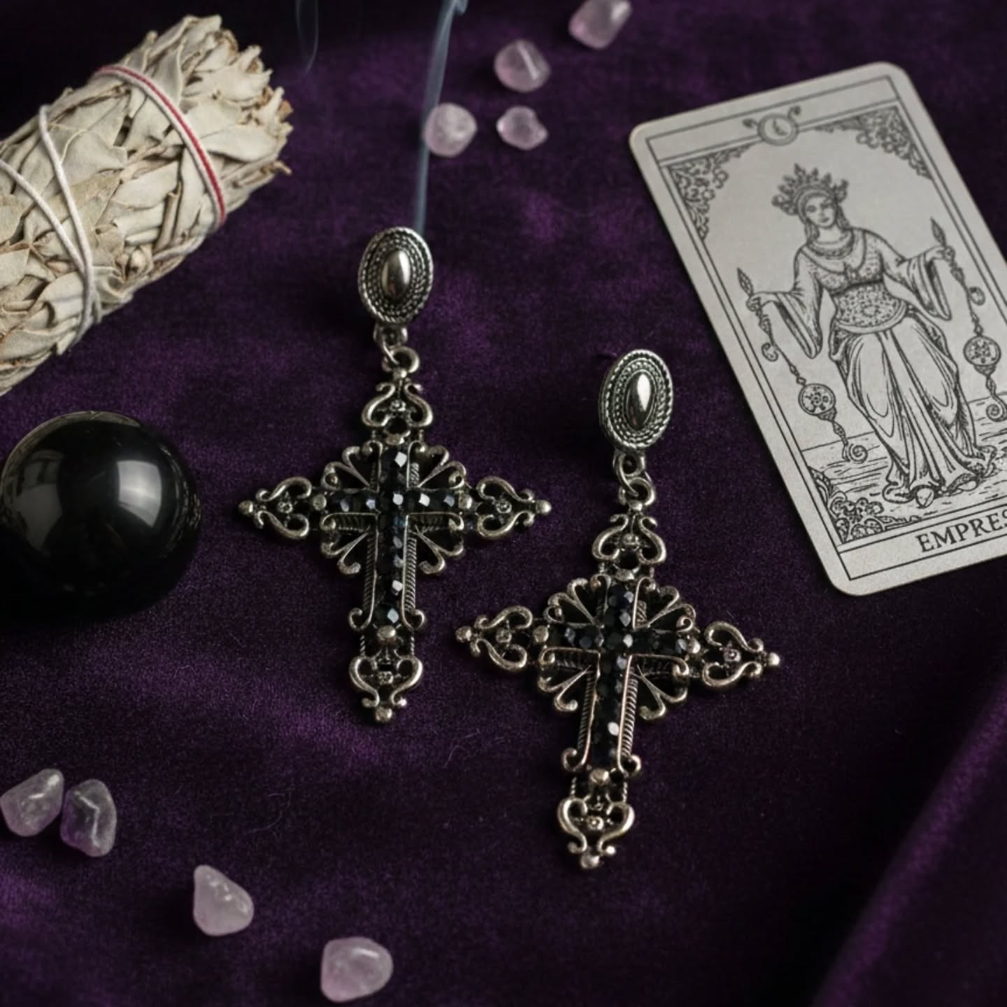 #BrincoGótico #CruzDeStrass #AcessóriosMísticos #EstiloGótico #Espiritualidade #MagiaEEstilo